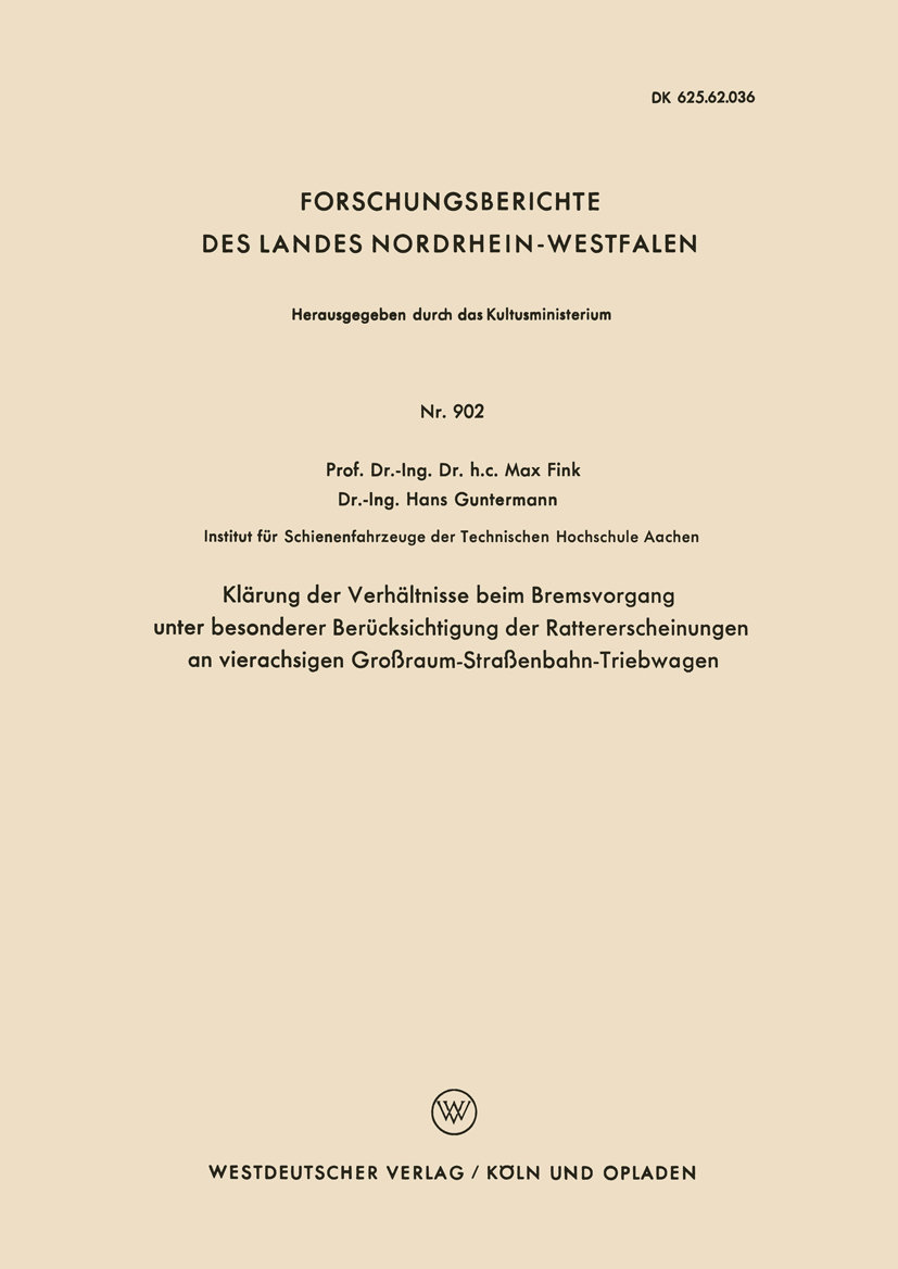 Klärung der Verhältnisse beim Bremsvorgang unter besonderer Berücksichtigung der Rattererscheinungen an vierachsigen Großraum-Straßenbahn-Triebwagen online kaufen