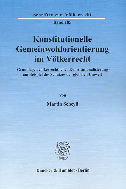 Martin Scheyli leistet einen Beitrag zur Erörterung der These, das Völkerrecht entwickle sich zu einer verfassungsähnlichen Ordnung der globalen Rechtsgemeinschaft. Ausgehend von der Frage, unter welchen Voraussetzungen die konstitutionelle Idee sich in einen völkerrechtlichen Kontext übertragen lässt, wird dabei ein am Maßstab des Gemeinwohls ausgerichteter, spezifischer völkerrechtlicher Verfassungsbegriff entworfen. Die daraus resultierenden Kriterien einer konstitutionellen Realität des Völkerrechts verlangen, dass Gemeinwohlbelange nicht nur abstrakt anerkannt, sondern in rechtlichen Verpflichtungen normativ konkretisiert und umgesetzt werden. Der Autor untersucht die Verwirklichung dieser Vorgabe am Beispiel des Umweltvölkerrechts, wobei dem Klimaschutz besondere Beachtung zukommt. Die Ergebnisse führen zu der Frage, wie sich die vorhandenen konstitutionellen Gehalte des Völkerrechts festigen und weiterentwickeln lassen.