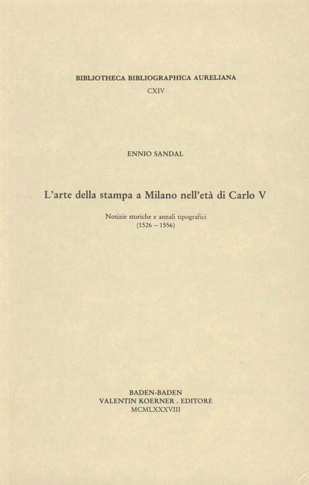 Die Publikation L'arte della stampa a Milano nell'età di Carlo V. von Ennio Sandal ist bei Koerner, Valentin erschienen. Die Publikation ist mit folgenden Schlagwörtern verschlagwortet: . Weitere Bücher, Themenseiten, Autoren und Verlage finden Sie hier: https://buch-findr.de/sitemap_index.xml . Auf Buch FindR finden Sie eine umfassendsten Bücher und Publikationlisten im Internet. Sie können die Bücher und Publikationen direkt bestellen. Ferner bieten wir ein umfassendes Verzeichnis aller Verlagsanschriften inkl. Email und Telefonnummer und Adressen. Die Publikation kostet in Deutschland 40 EUR und in Österreich 41.2 EUR Für Informationen zum Angebot von Buch FindR nehmen Sie gerne mit uns Kontakt auf!