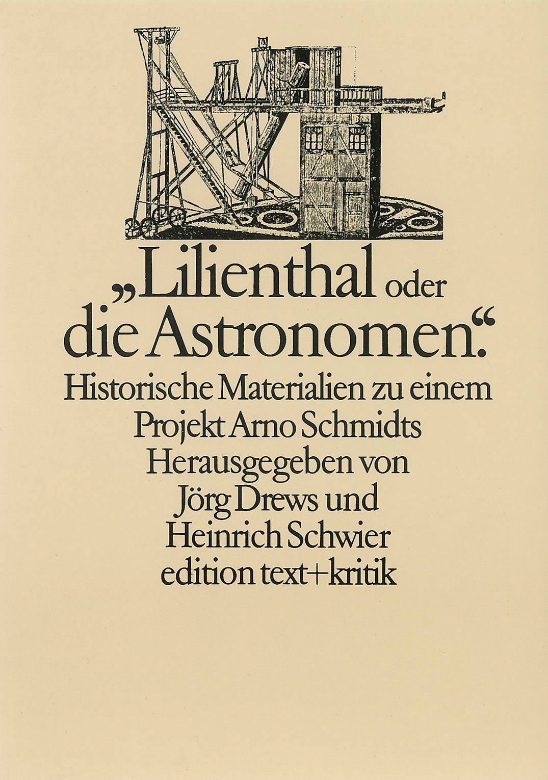 Dieser Band enthält Materialien zu dem letzten großen Romanprojekt Arno Schmidts. Von besonderem Interesse dürfte hierbei die sachkundige und bei Weitem detailierteste Untersuchung zur Geschichte der Lilienthaler Sternwarte und ihrer Leiter von Hermann Albert Schuhmacher aus dem Jahre 1890 sein, die Schmidt selbst in seinen Vorstudien verwendet haben dürfte, und in der eine erlauchte Reihe von Namen wie Schröter, Olbers, Harding, Bessel, Herschel und Gauß sich zu einer „astronomischen Gelehrtenrepublik“ zusammenfindet. Die Veröffentlichung von Schuhmachers Untersuchung kann als ein wesentlicher Beitrag zum Verständnis zumindest der Thematik des von Schmidt nie ausgeführten Romanprojekts „Lilienthal“ angesehen werden.