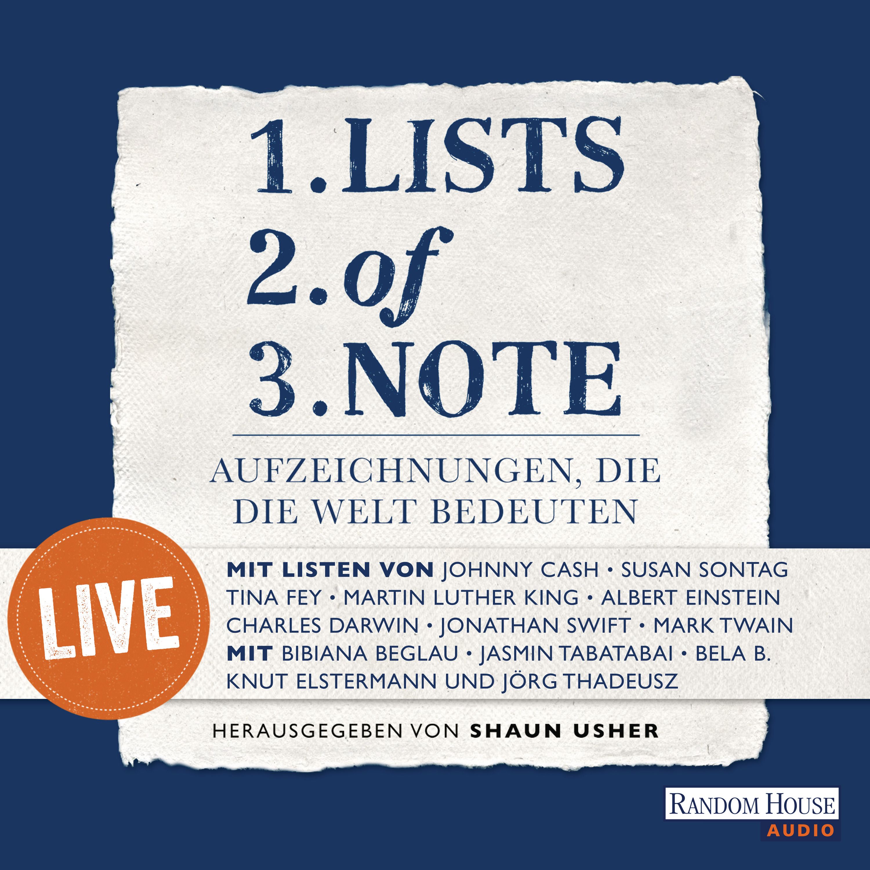 Lists of note – live von B.,  Bela, Beglau,  Bibiana, Elstermann,  Knut, Tabatabai,  Jasmin, Thadeusz,  Jörg, Usher,  Shaun