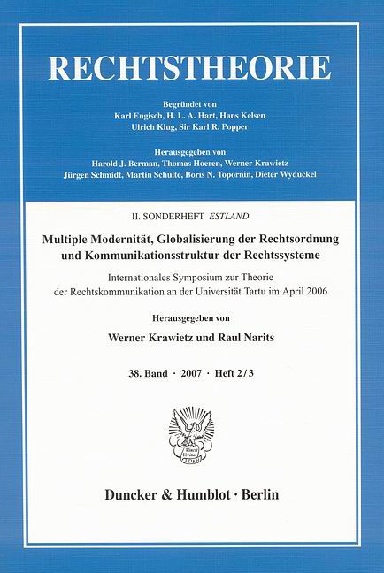Internationales Symposium zur Theorie der Rechtskommunikation an der Universität Tartu im April 2006. II. SONDERHEFT ESTLAND. Zeitschrift Rechtstheorie, 38. Band (2007), Heft 2-3 (S. 197–394).