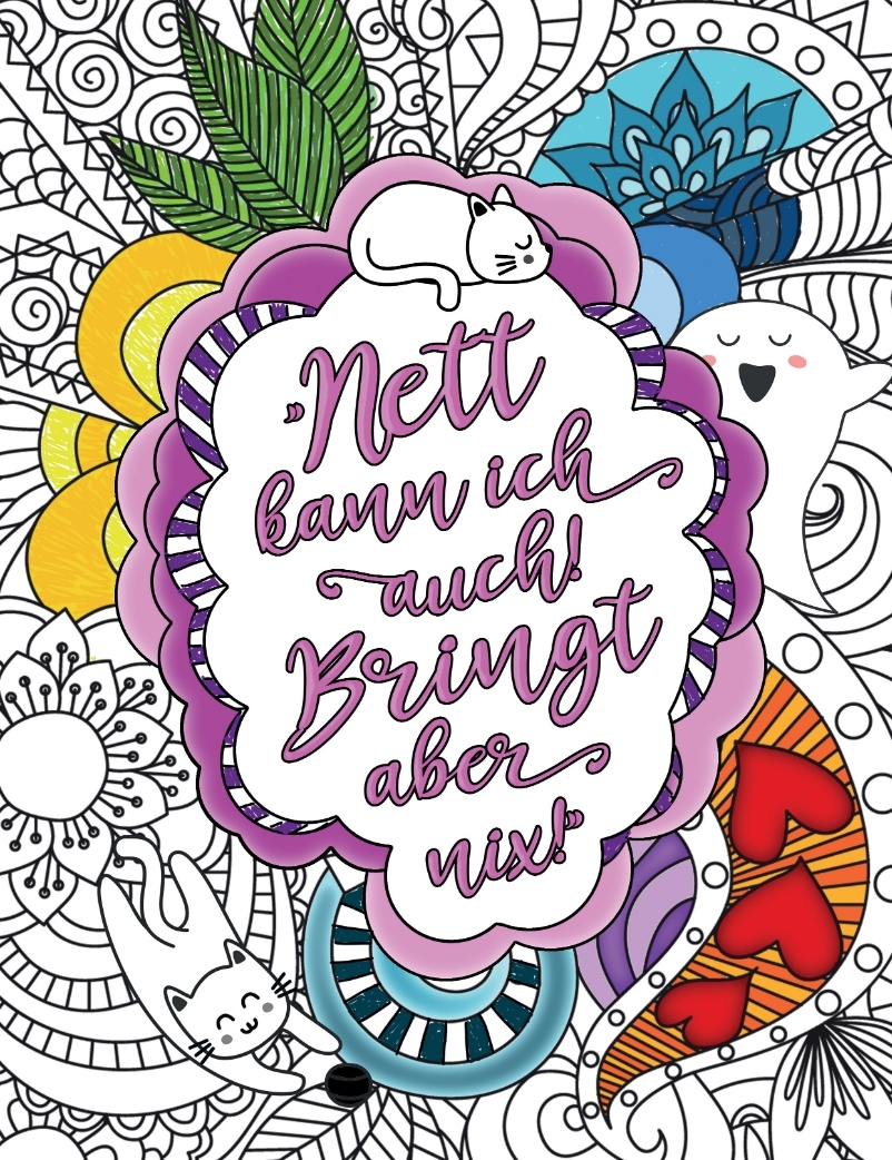 Nett kann ich auch! Bringt aber nix! Malbuch für Erwachsene mit coolen Flüchen, Sprüchen und Schimpfworten auf großartigen Mandalas.