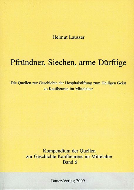 Das hiermit vorgelegte Buch mit den Quellen zur Geschichte des im Jahre 1249 oder kurz davor gegründete Hospitals zum Heiligen Geist in Kaufbeuren fügt sich als Band 6 in die auf zehn Bände konzipierte Reihe des Kompendiums der Quellen zur Geschichte der Stadt Kaufbeuren und ihrer Einwohner im Mittelalter ein. Er ist der vierte bisher abgeschlossene Band dieser Reihe und umfasst alle bekannten historschen Quellen zur Geschichte der wichtigsten sozialen Einrichten der stadt Kaufbeuren im späten Mittelalter von der Gründung derselben bis zum Jahre 1500, geht allerdings bei einigen Nachrichten von besonderer Bedeutung für die Stadtgeschichte auch über diesen Zeitpunkt hinaus.