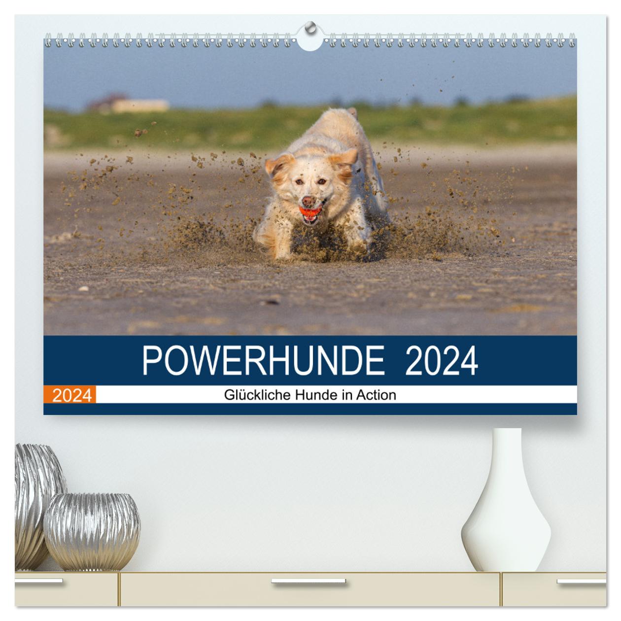 POWERHUNDE 2024 (hochwertiger Premium Wandkalender 2024 DIN A2 quer), Kunstdruck in Hochglanz