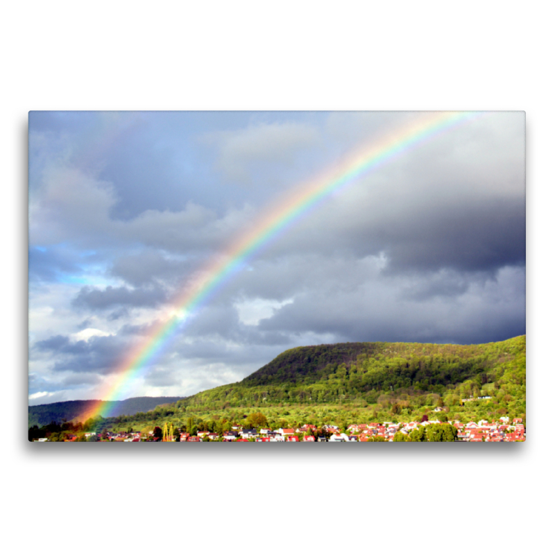 Special-Edition der Leinwand „Regenbogen über Pfullingen“ im Format „75×50“ als perfektes Geschenk oder als Dekoration für das Schlafzimmer, Büro oder Wohnzimmer.Ein Motiv aus dem Kalender „Pfullingen – ganz natürlich“ von GUGIGEI: Inmitten des Biosphärengebiets Schwäbische Alb befindet sich dieses hübsche Städtchen. Pfullingen liegt am Fuße der Schwäbischen Alb an der wasserreichen Echaz und ist ein idealer Ausgangspunkt für Wanderungen und Ausflüge.