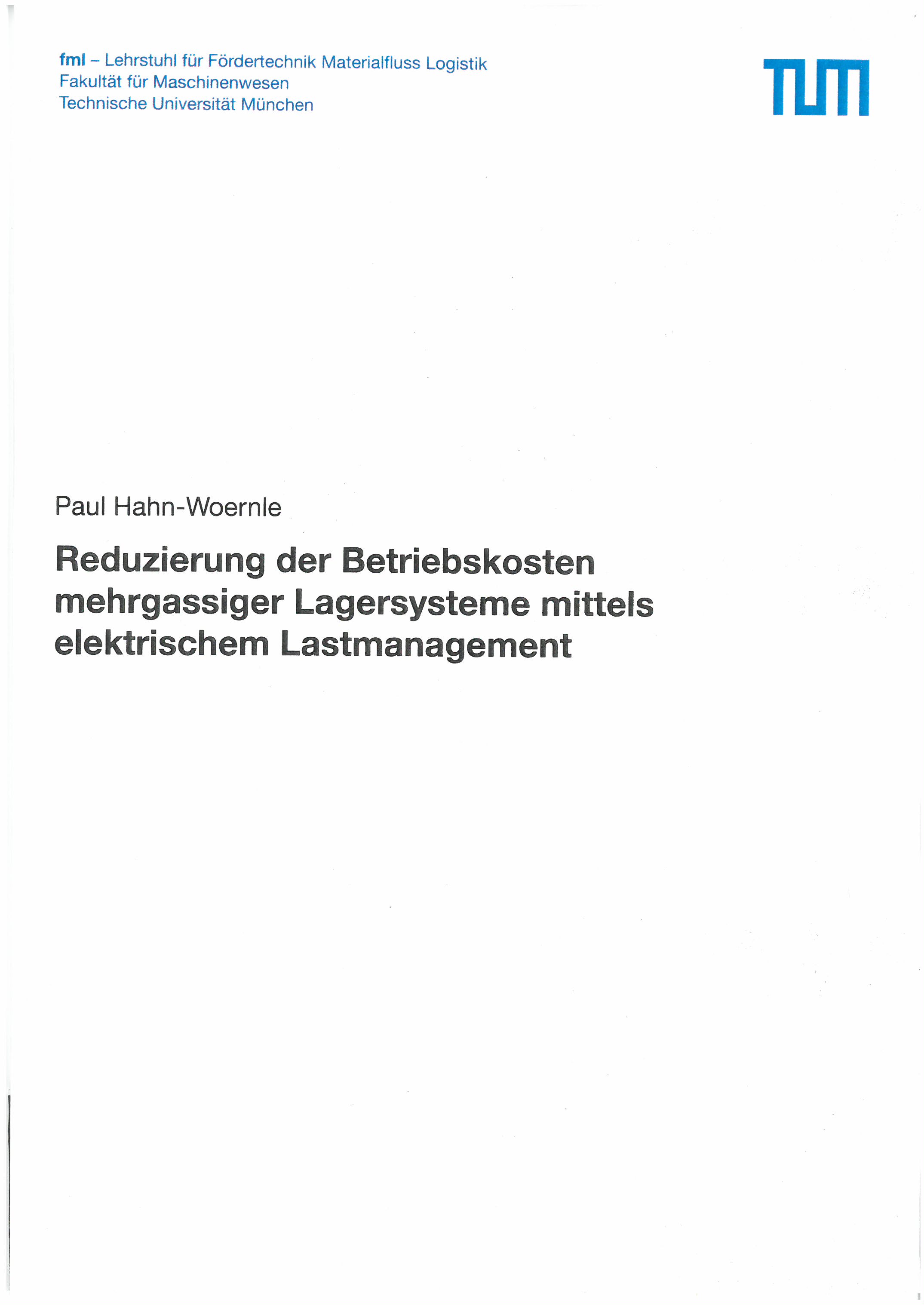 Die Dissertation untersucht anhand einer Simulationsstudie die Auswirkungen eines elektrischen Lastmanagements auf die Durchsatzleistung von mehrgassigen vollautomatisierten Lagersystemen, die von Regalbediengeräten bedient werden. Das Lastmanagement begrenzt die maximale Wirkleistung und den Leistungsmittelwert, indem es Teilaufträge der Regalbediengeräte verzögert. Die maximale Wirkleistung wird ohne nennenswerten Durchsatzleistungsverlust stark reduziert. Die Grenze für den Leistungsmittelwert reduziert die Durchsatzleistung nahezu proportional