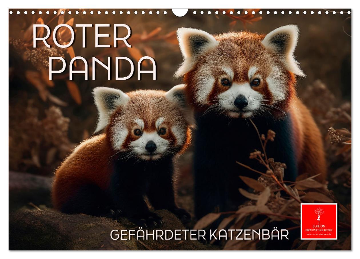 Der kleine Panda, auch Katzenbär, Roter Panda, Feuerfuchs, Bärenkatze oder Goldhund genannt, steht auf der Roten Liste gefährdeter Tierarten der Weltnaturschutzunion und ist noch im Gebiet zwischen Nepal, Burma, Südchina bis zum östlichen Zentralchina zu finden. Der Fotokünstler Peter Roder hat wunderschöne KI-Bilder gestaltet. Ein eindrucksvoller Kalender und ein bezaubernder Begleiter für jeden Tierfreund.