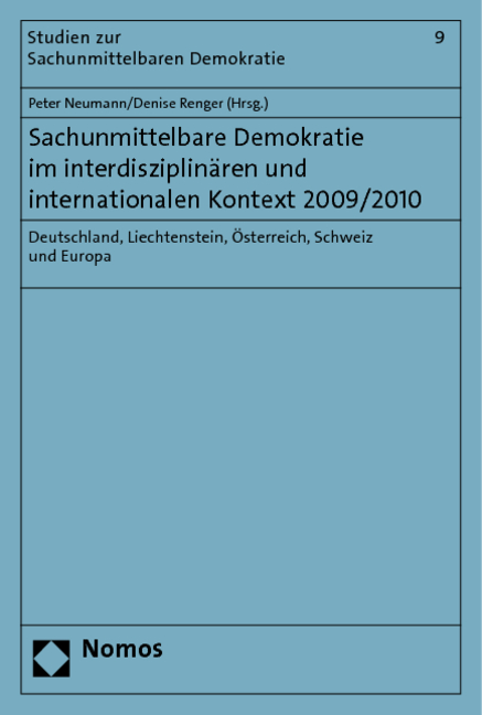 Der erste Band „Sachunmittelbare Demokratie im interdisziplinären und internationalen Kontext 2008/2009“ widmete sich der sachunmittelbaren Demokratie in Deutschland, Österreich und der Schweiz. Der zweite Tagungsband knüpft daran an und erweitert den Kreis um Beiträge zum Fürstentum Liechtenstein und zur Europäischen Bürgerinitiative.