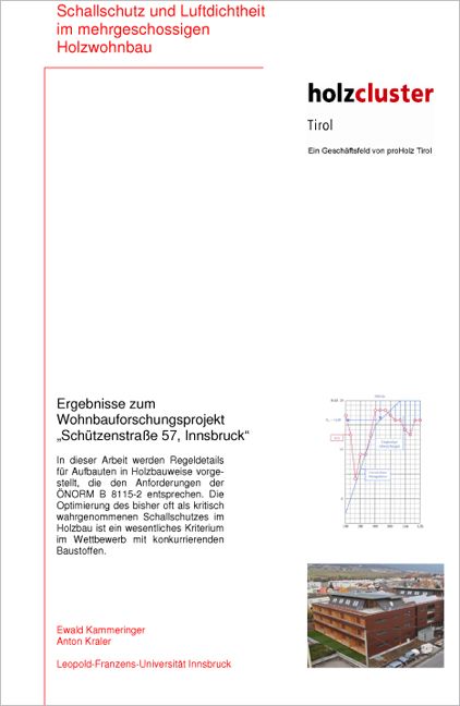 mehrgeschossigen Wohnanlage in Holzbauweise. Die wissenschaftliche Leitung oblag DI Dr. Anton Kraler vom Holzbaulehrstuhl sowie A.o. Univ.-Prof. Dr. Ewald Kammeringer, beide von der Universität Innsbruck.
