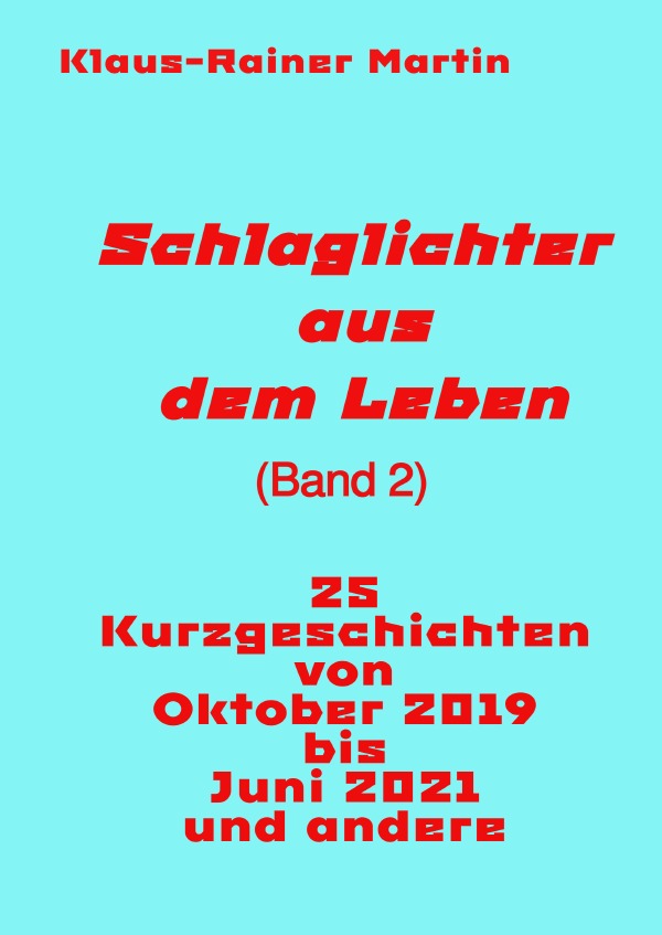 In der Zeit von November 2015 bis März 2021 habe ich insgesamt 50 Kurzgeschichten als eBook geschrieben. Um alle Kurzgeschichten auch denen zugänglich zu machen, die lieber ein Buch in der Hand halten, als ein eBook im Reader zu lesen, habe ich mich dazu entschlossen, jeweils 25 dieser Kurzgeschichten in zwei Sammelbänden im April 2021 in einem ersten Sammelband und im Juni 2021 in einem zweiten Sammelband zu veröffentlichen.