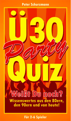 Der ultimative Quiz-und Spielspaß für alle über Dreißig.Kommen Sie mit auf eine spielerische Zeitreisedurch Ihre Vergangenheit. Wissenswertes aus den 80ern, den 90ern und von heute erwartet Sie in diesem unterhaltsamen Spiel. Sie werden überrascht sein, was Sie schon alles erlebt haben! Quer durch alle Themengebiete wird Ihr Gedächtnis wieder auf Vordermann gebracht. Durch die 3 Auswahlantworten zu jeder Frage können Sie das Spiel auch mit Jüngeren spielen. Ein ideales Geschenk für alle über 30.