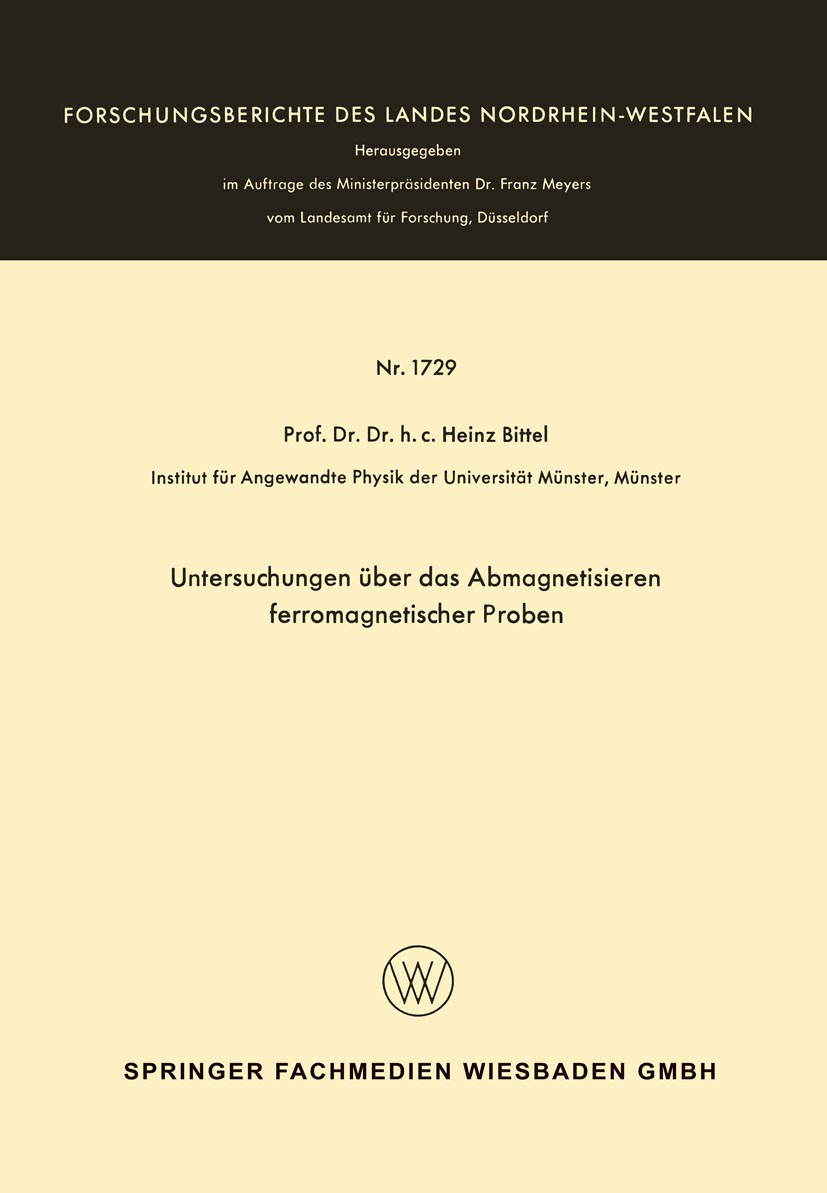 Die Publikation Untersuchungen über das Abmagnetisieren ferromagnetischer Proben von Heinz Bittel ist bei VS Verlag für Sozialwissenschaften erschienen. Die Publikation ist mit folgenden Schlagwörtern verschlagwortet: Fluss, Frequenz, Geschichte, Magnetfeld, Messung, Permeabilität, Sättigung, Spule, Teilung, Verfahren, Verteilung, Zylinder. Weitere Bücher, Themenseiten, Autoren und Verlage finden Sie hier: https://buch-findr.de/sitemap_index.xml . Auf Buch FindR finden Sie eine umfassendsten Bücher und Publikationlisten im Internet. Sie können die Bücher und Publikationen direkt bestellen. Ferner bieten wir ein umfassendes Verzeichnis aller Verlagsanschriften inkl. Email und Telefonnummer und Adressen. Die Publikation kostet in Deutschland 54.99 EUR und in Österreich 56.53 EUR Für Informationen zum Angebot von Buch FindR nehmen Sie gerne mit uns Kontakt auf!