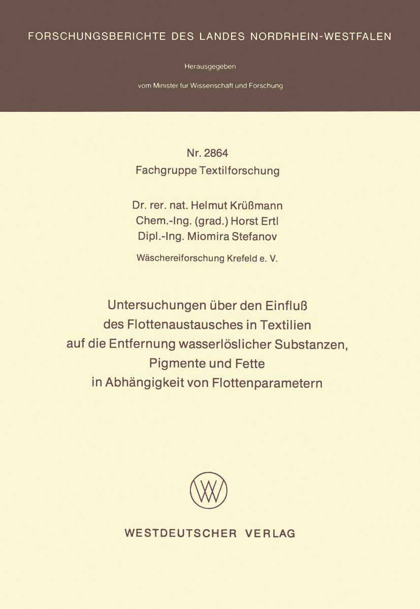 Untersuchungen über den Einfluß des Flottenaustausches in Textilien auf die Entfernung wasserlöslicher Substanzen, Pigmente und Fette in Abhängigkeit von Flottenparametern online kaufen