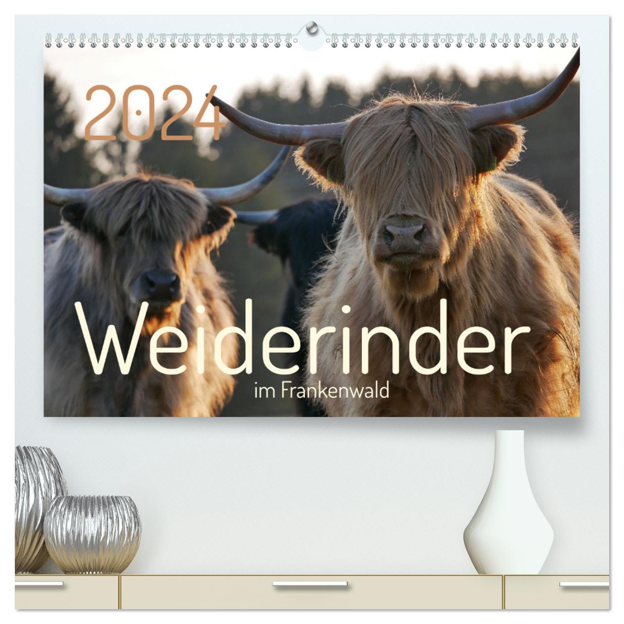 Weiderinder im Frankenwald (hochwertiger Premium Wandkalender 2024 DIN A2 quer), Kunstdruck in Hochglanz