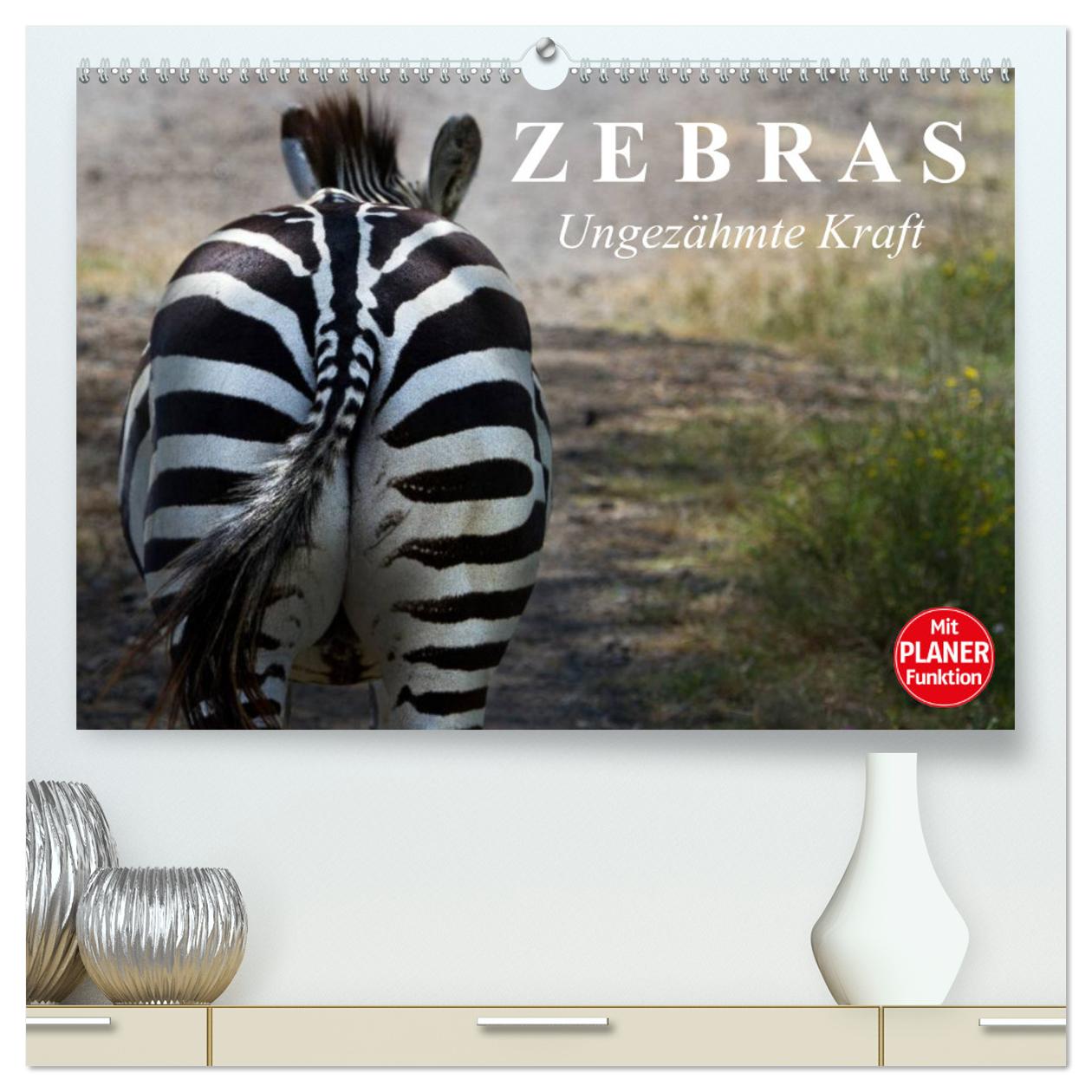 Zebras – Ungezähmte Kraft (hochwertiger Premium Wandkalender 2024 DIN A2 quer), Kunstdruck in Hochglanz