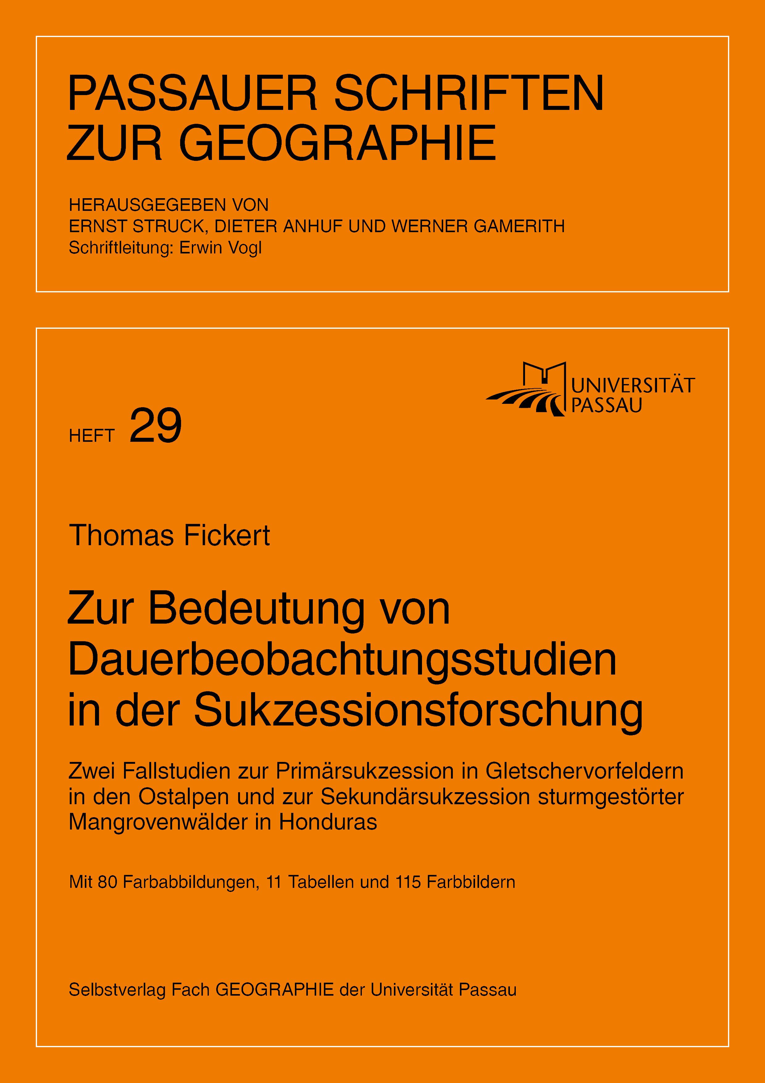 Da die Vegetationsentwicklung etwa nach schweren Störungen oder bei der Besiedlung von Neuland in der Regel über zahlreiche Zwischenschritte (Sukzessionsstadien) abläuft und dafür oft beträchtliche Zeiträume notwendig sind, wird bei den meisten Sukzessionsstudien auf die Methode der „space for time substitution“ zurückgegriffen, bei der ein räumliches Nebeneinander unterschiedlicher (datierbarer) Standorte als ein zeitliches Nacheinander interpretiert wird. So lassen sich Entwicklungstrends ableiten, ohne die tatsächlich notwendigen Zeiträume abwarten zu müssen. Das Verfahren ist allerdings mit Unsicherheiten behaftet, da auch andere Einflüsse als nur das Flächenalter für die festgestellten Entwicklungstrends von Bedeutung sein können. Um eindeutige Belege für die sukzessive Entwicklung der Vegetationsdecke an einem Standort, die durchlaufenen Zwischenschritte und die benötigten Zeiträume zu erhalten, sind Dauerbeobachtungen in regelmäßigen Abständen unumgänglich, aus Zeit- und Finanzierungsgründen aber nach wie vor rar. Diese überarbeitete Habilitationsschrift fasst Erkenntnisse aus zwei seit 2005 laufenden Dauerbeobachtungsprojekten zusammen, einmal zur Vegetationsentwicklung jüngst eisfrei gewordener Gletschervorfelder in den Ostalpen, zum anderen zur Regeneration von Mangroven nach einer starken Hurrikanstörung auf der zu Honduras gehörenden Karibikinsel Guanaja. Der präsentierte Untersuchungszeitraum von knapp einem Jahrzehnt ist dabei sicher nicht ausreichend, um über die frühen Entwicklungsstadien hinausgehende Aussagen treffen zu können. Die bisherigen Erkenntnisse bieten aber – obwohl vordergründig betrachtet keinerlei Verbindungen hinsichtlich geographischer Lage und Ökosystemausstattung vorliegen – wertvolle Erkenntnisse zum Wert von Dauerbeobachtungen in der Sukzessionsforschung.
